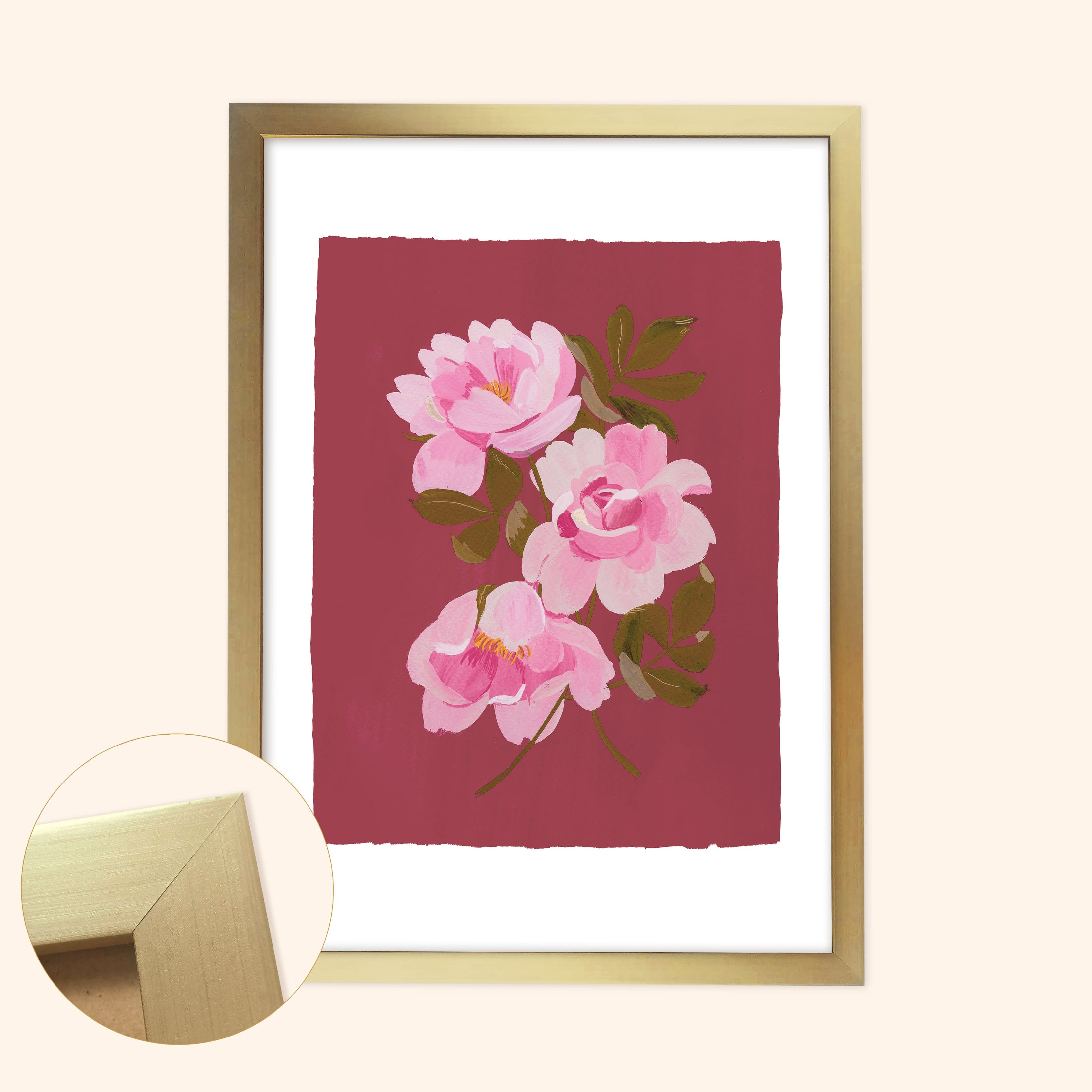 Featuring a set of dainty pink shrub roses, against a rich pink backdrop.