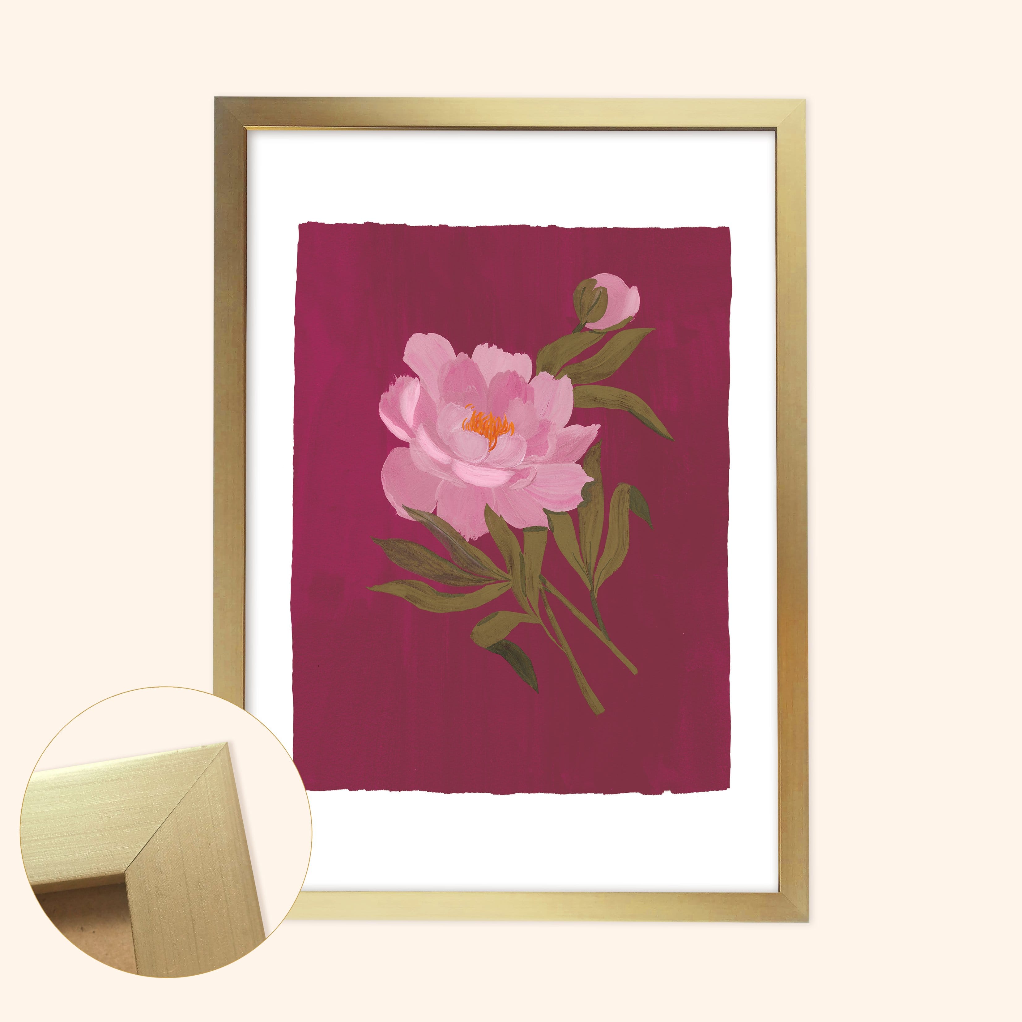 Featuring a fluffy, deep-pink Peony painted onto a rich, burgundy-pink background.