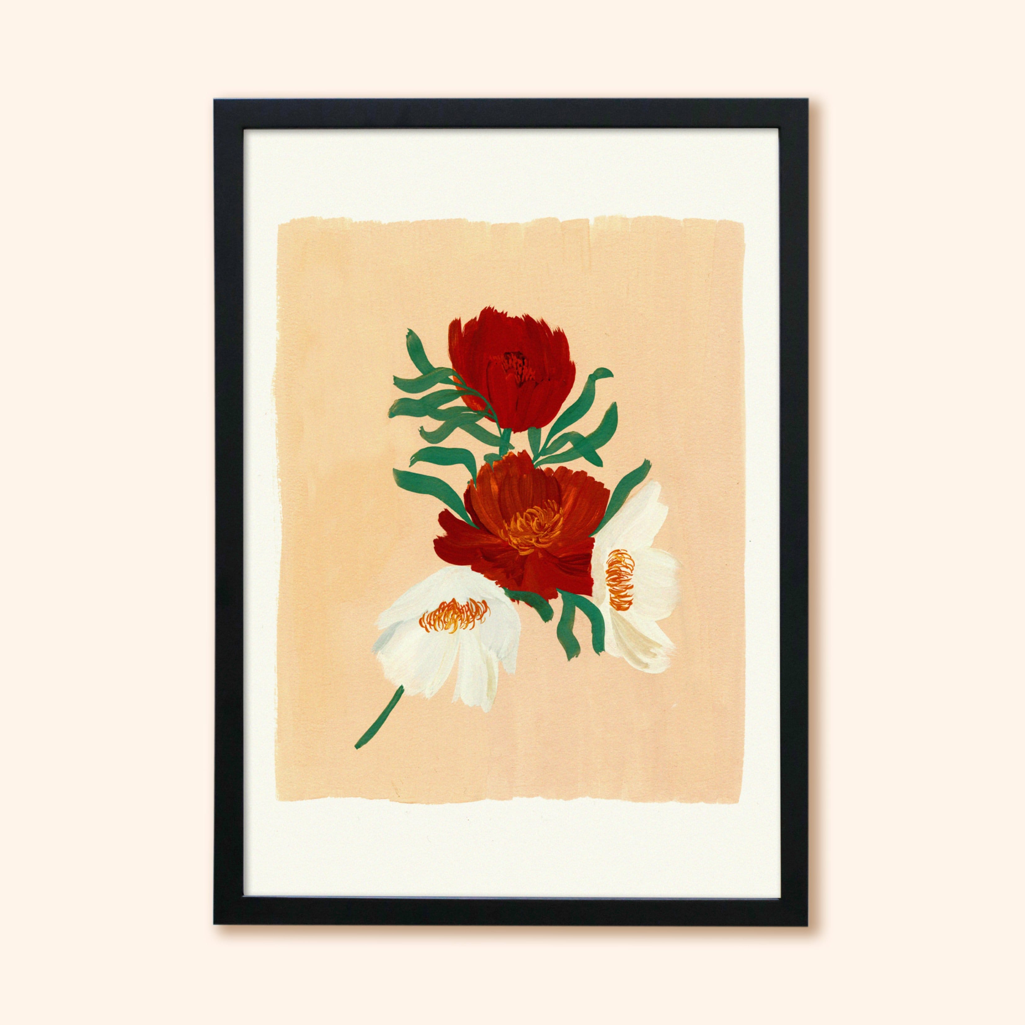 Each floral art print begins life as an idea or a scribble in a sketchbook, and is almost always handpainted using Gouache paints. It is then digitised with a high-quality scanner, tidied up and sized to suit A2, A3, A4 and A5 Prints. Every print is printed on a thick, 350gsm paper with a slight textured surface, and is securely packed with a recycled backing board in a biodegradable sleeve.