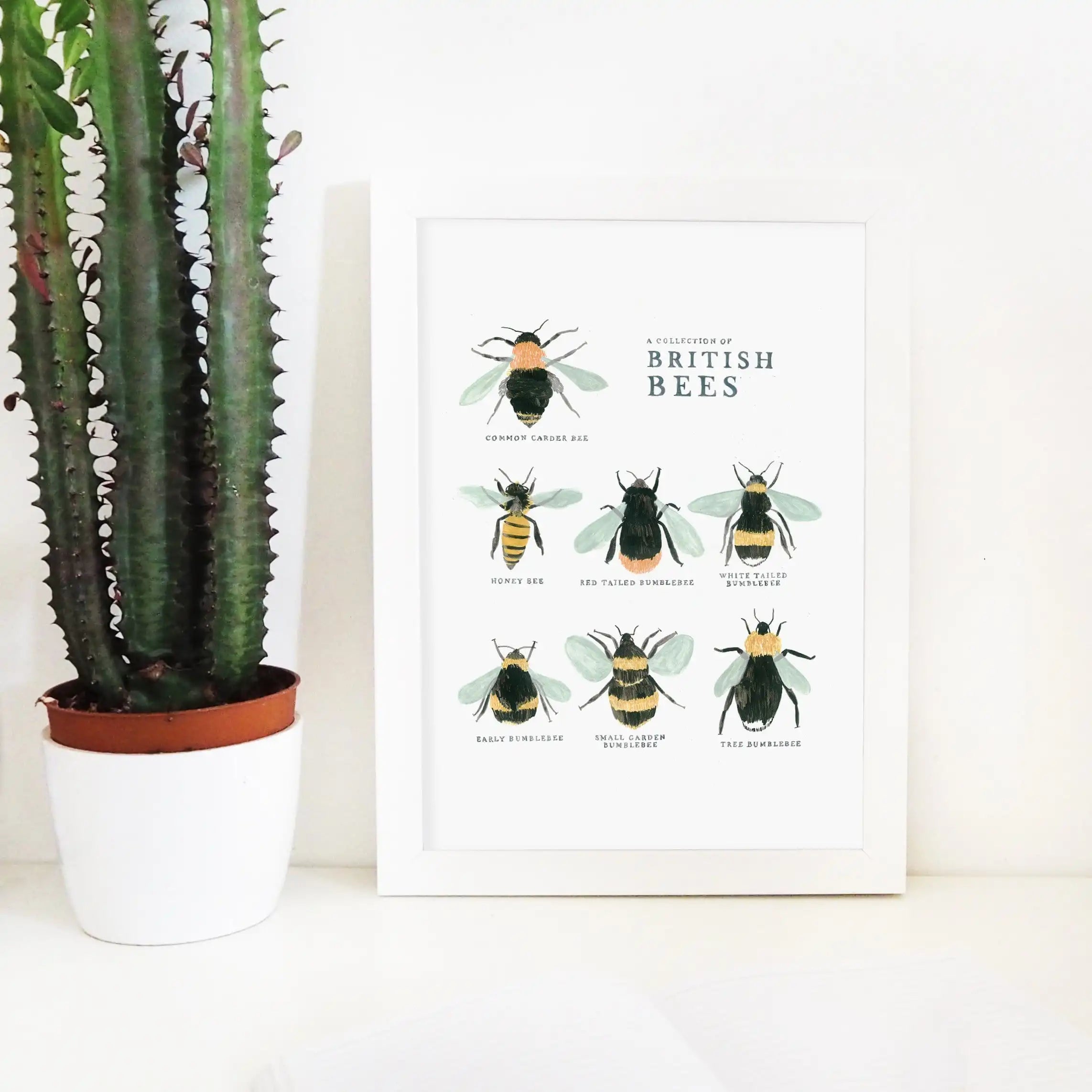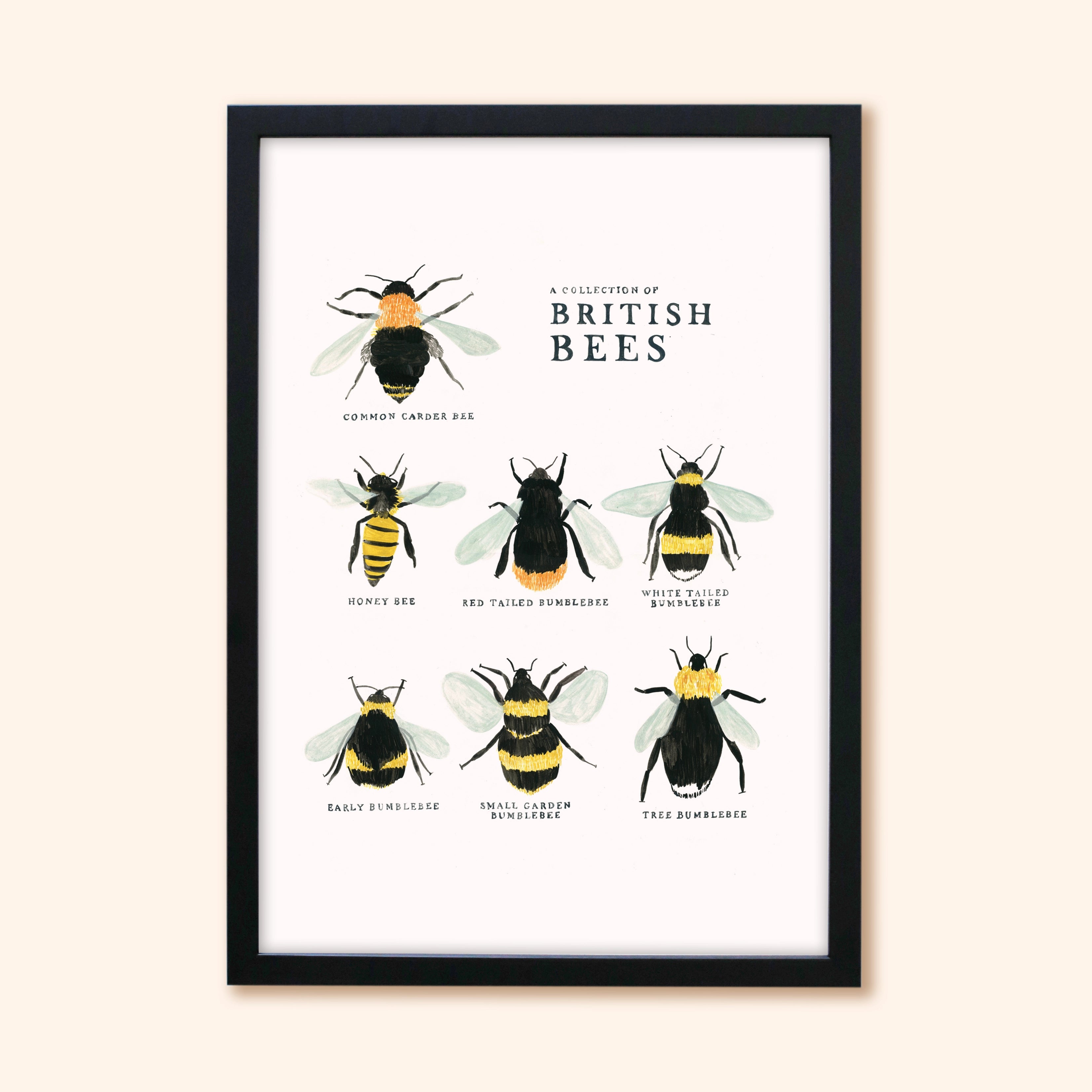 This British Bee print is designed and made in the UK from Annie’s original painting - inspired by a family love of gardening and the honey and bumblebees that are such a vital part of it! The British Bee Collection features a range of bee-themed and patterned stationery and homewares, created from delicate, gouache paintings of bumblebees and honey bees that are commonplace in Britain! Styled in the likeness of a bumblebee identification chart but with a hand painted character, this bee print is both beautiful and useful.
