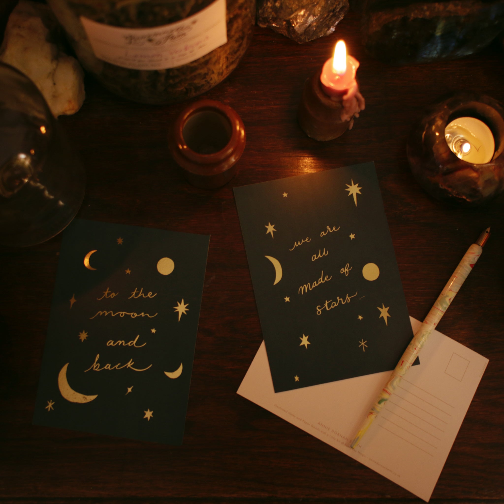A tiny companion to the Made of Stars print, this pretty astronomy postcard is the perfect noticeboard-sized reminder that there’s a little of the heavenly bodies in all of us.